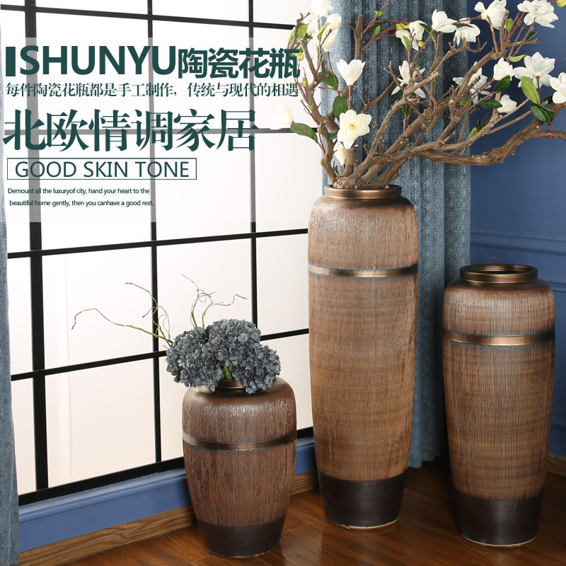 Jingdezhen new Chinese-style ceramic floor-to-ceiling large vase living room pottery soft decorative art TV cabinet flower arrangement