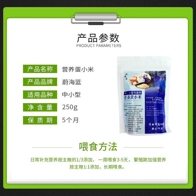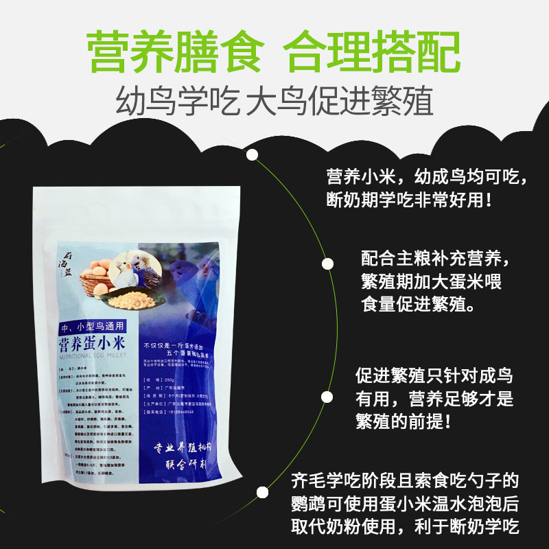 Egg millet nutrition parrot feed bird food tiger skin peony Xuanfeng small sun general 250g