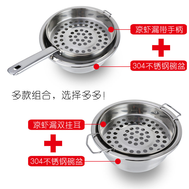 Stainless steel cold shrimp special colander Large hole colander Household colander for noodle fish Large cold fish meal colander