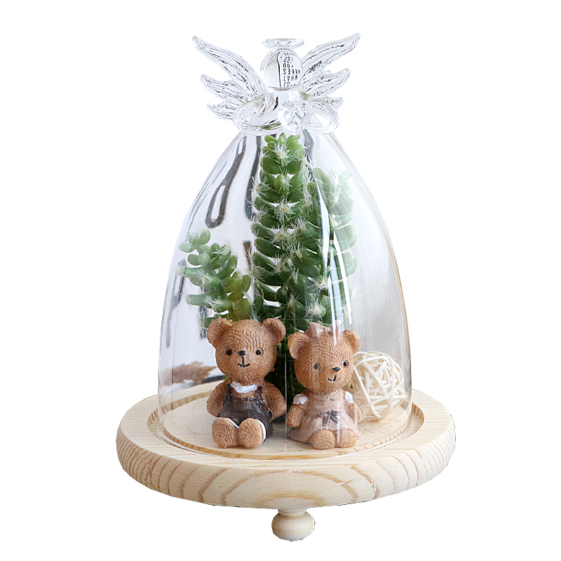 Illuminated bear White rose bear Green malt bear Dried flower Magnolia ball Angel cover sunflower orange Cactus