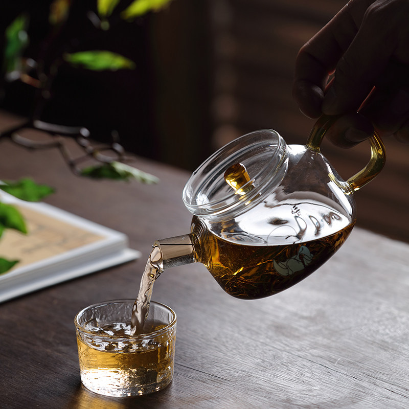 Heat-resistant bubble teapot full glass tea set thickened glass teapot with filter cooking teapot side to make small flower teapot