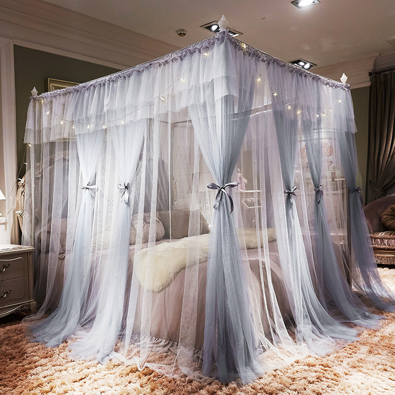 Princess style double-layer mosquito net 1 5 three-door encryption thickened square top 1 8m double court floor-to-ceiling household w pattern account