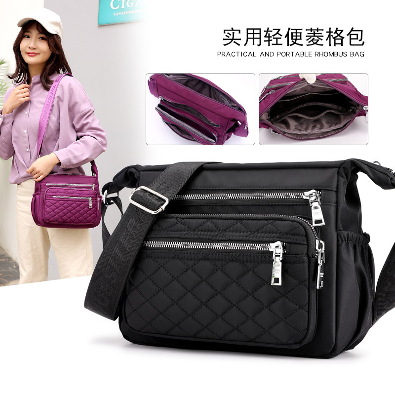 2019 simple Oxford cloth bag crossbody Lingge women's bag lightweight middle-aged women's bag waterproof nylon cloth bag shoulder bag