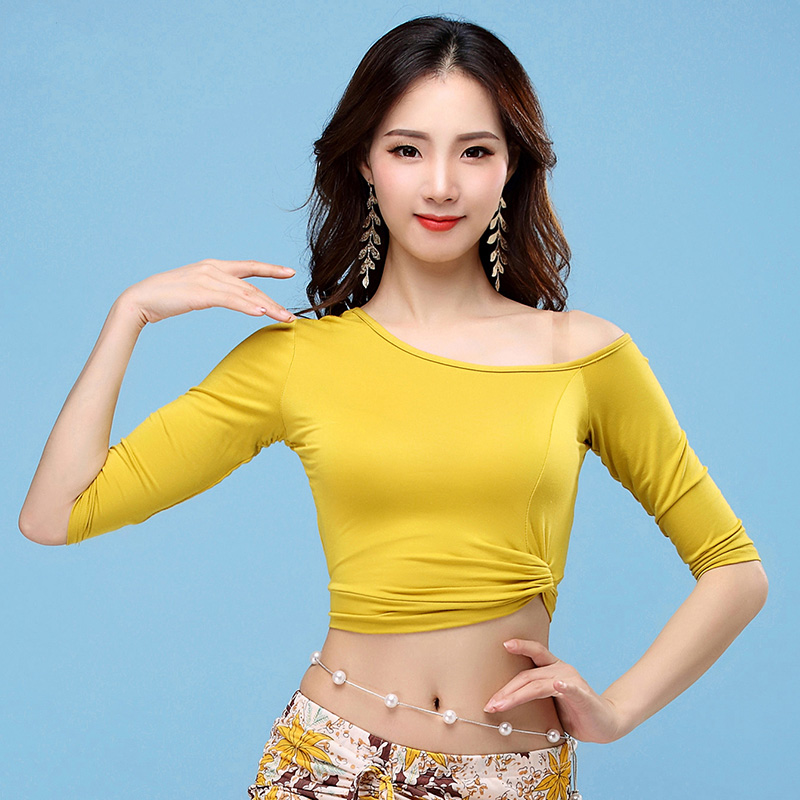 Belly dance blouses women's new sexy oriental dance costumes Short sleeves Mondale upper beginner dance practice Gongfu
