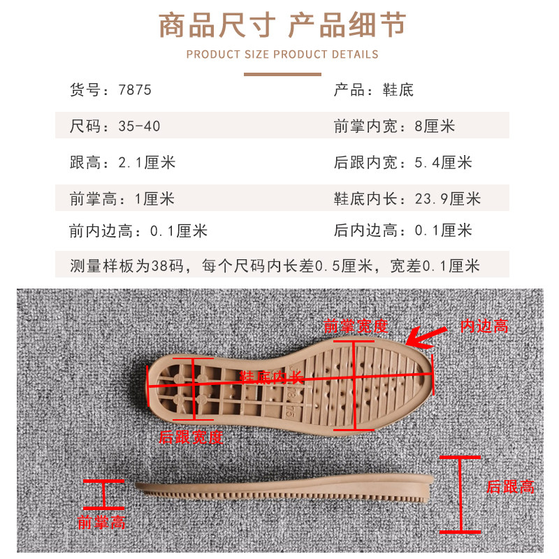 7875 Women's Rubber Sole Pea Shoe Sole Rubber Non-slip Wear-resistant Soft Leather Shoe Sole Replacement Encyclopedia