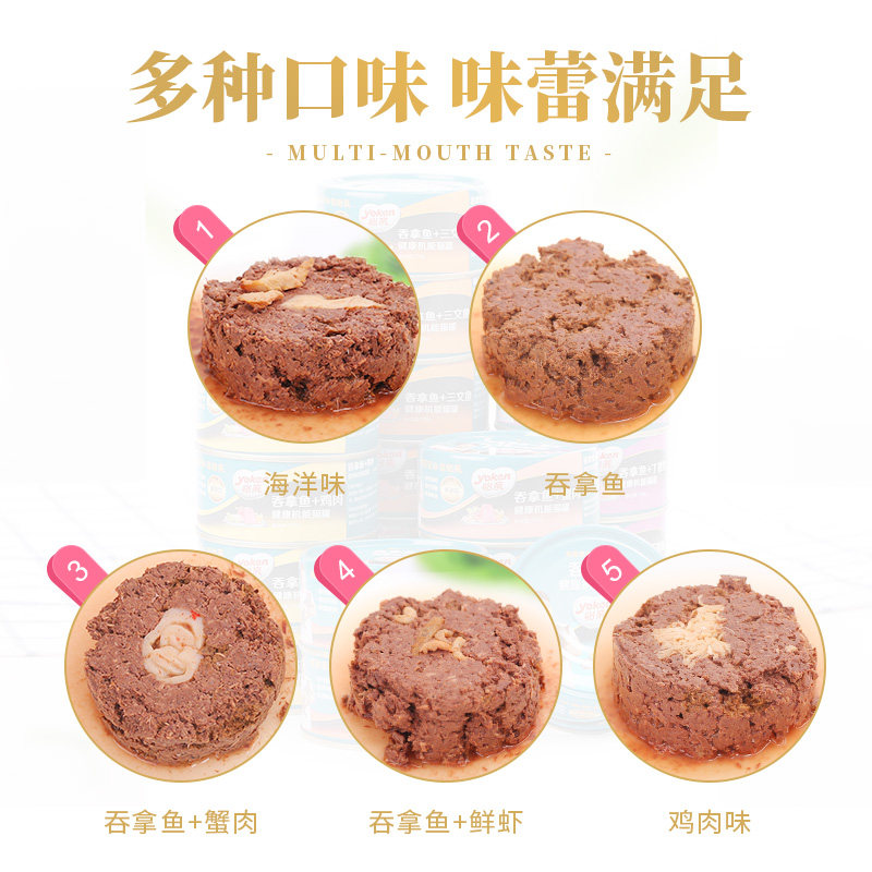 Swallow fish Beef Tuna Minted Shrimp Swallowing Fish Chicken Flavor Swallowing Fish Salmon Flavor Swallowing Fish Crab Meat Taste Duck Meat Sweet Potato Taste 3 cans to try and eat