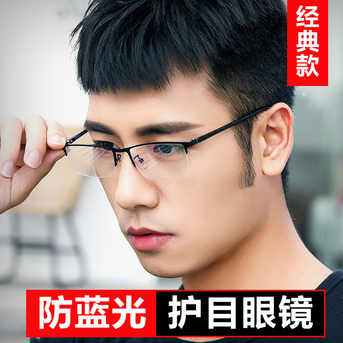 Anti-blue light discoloration glasses men and women mobile phone radiation protection goggles half-frame flat mirror no degree myopia glasses frame