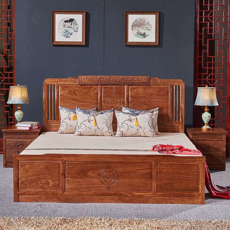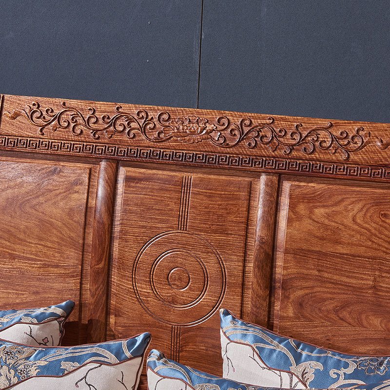 Solid wood bed Redwood furniture Hedgehog Purple Sandalwood Chinese Imitation Antique Flowers Pear Wood Large Bed Bedroom Wedding Bed Master Bedroom With Double Bed