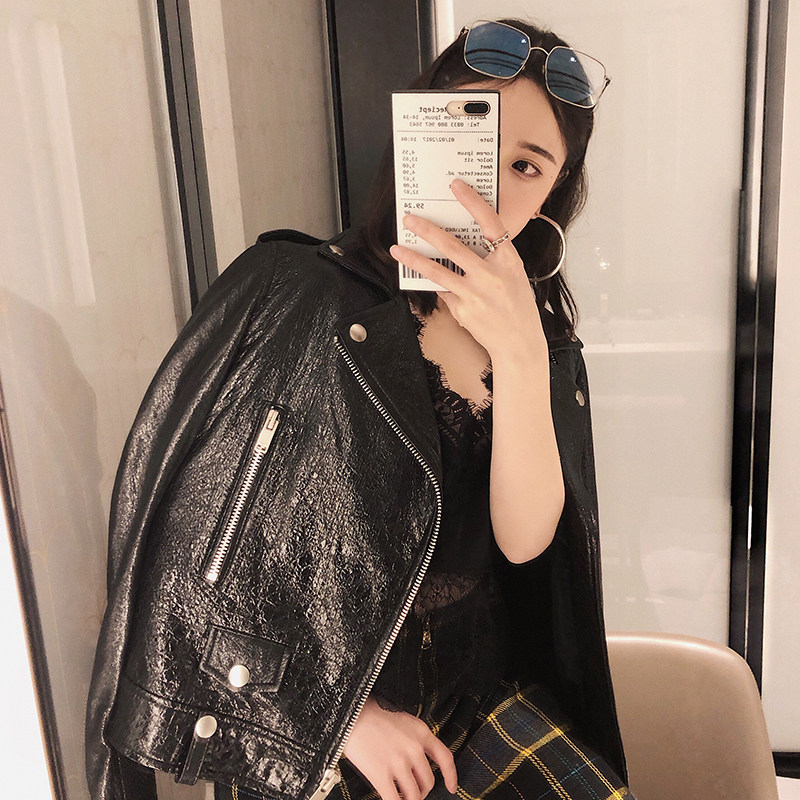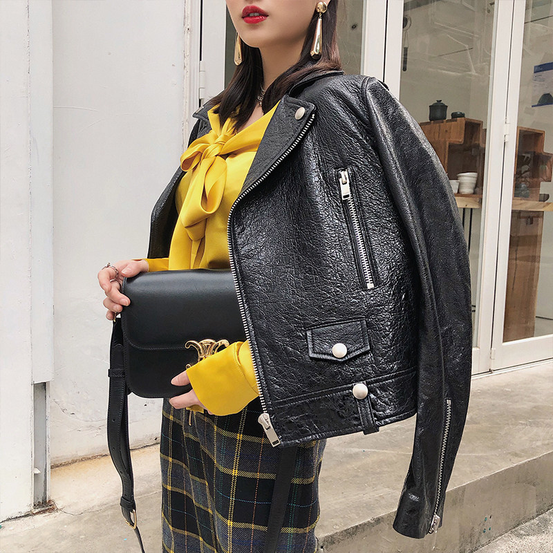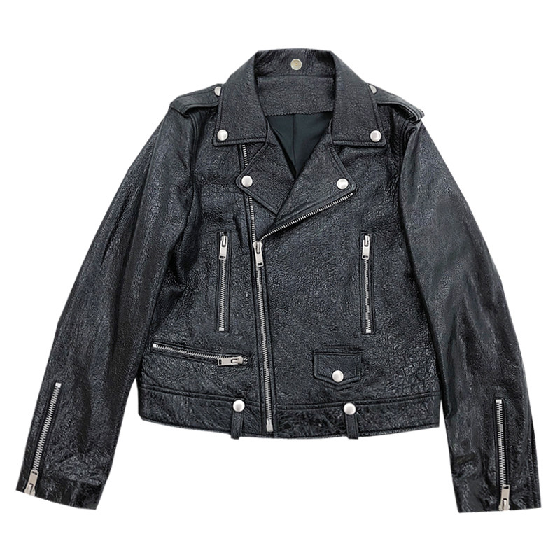 COCO LIMITED sparkly attractive imported sheepskin motorcycle leather coat women
