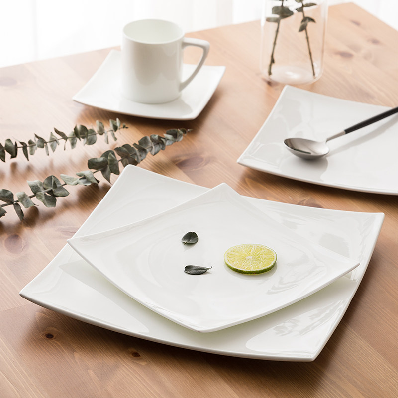 Japanese-style pure white western food plate steak knife and fork plate set household ceramic bone china western food tableware steak plate