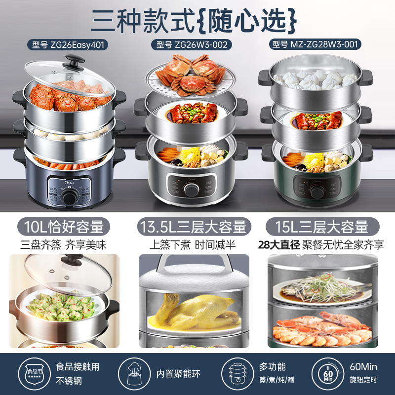 Midea electric steamer multifunctional home small three-layer large capacity fully automatic official steaming vegetable small artifact multi steamer