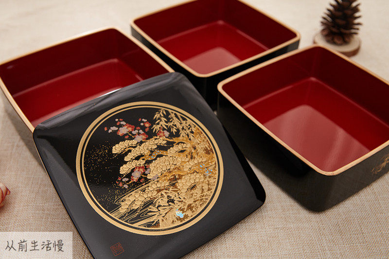 Japanese imported mountain lacquer auspicious pingzhu jewelry box multi-layer collection box storage box birthday wedding gift