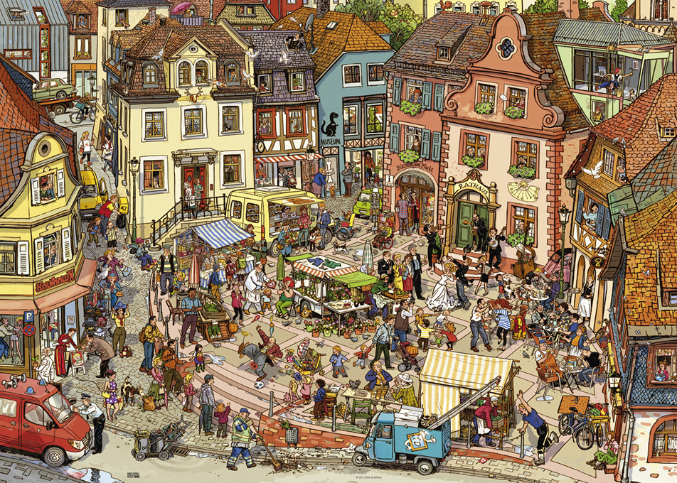 Genuine German HEYE Town Collection Market 1000 Pieces Bazaar Imported Puzzle Triangle Box Adult Decompression Toys