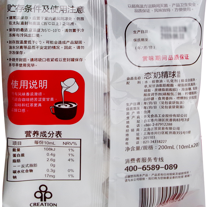 Love brand cream ball Taiwan coffee partner non-dairy creamer big love liquid fresh cream ball 10mlx20 grains smooth