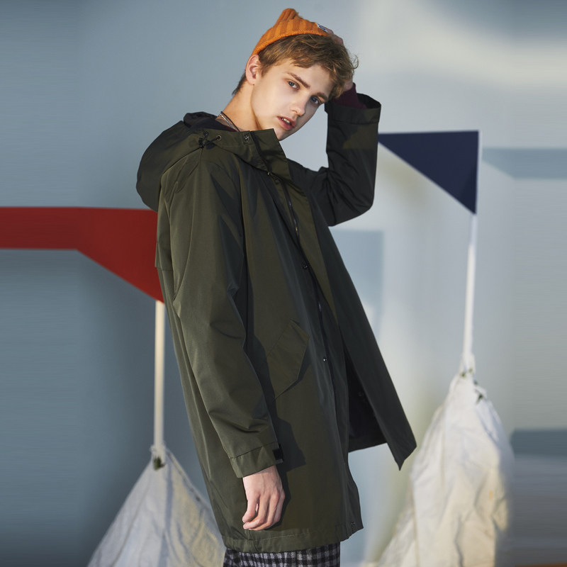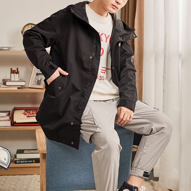 Tang Lion autumn new loose windbreaker men's mid-length hooded student popular coat men's coat Korean style fashion