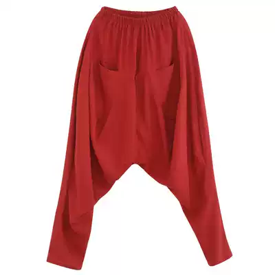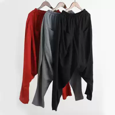 Prince Harlan pants linen bunch leg trousers men's Chinese style flying squirrel big crotch pants loose radish Harlan low crotch cross pants