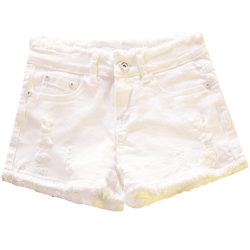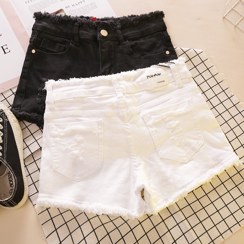Tide card 2022 new hair side breaking hole Cowboy shorts female summer Han version 100 hitch white hot pants ins overfire pants