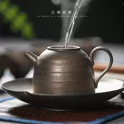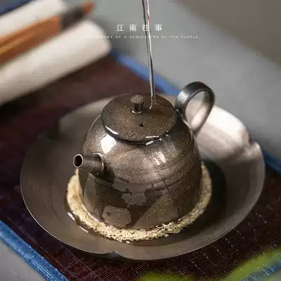 Jiangnan past Kung Fu tea set Dry brewing plate pot holder Ceramic household handmade rust glaze dry brewing table tea holder Japanese style