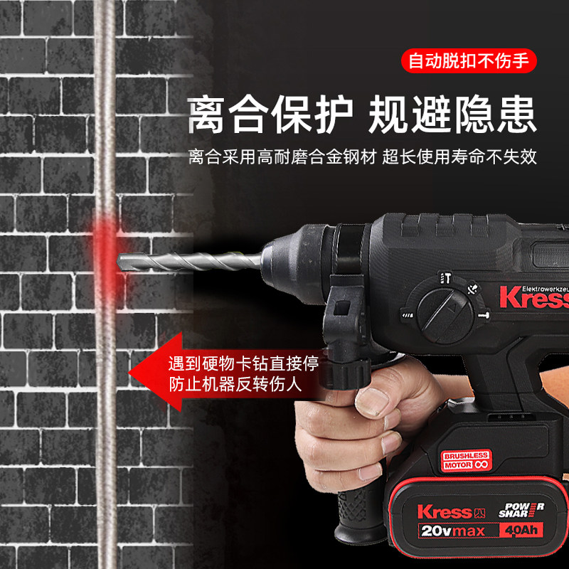 Kasheng KU390 Lithium Electric Hammer Rechargeable Lithium Electric Brushless Electric Hammer Industrial Grade Impact Drill Hammer Drill Electric Hammer Electric Pick Kress