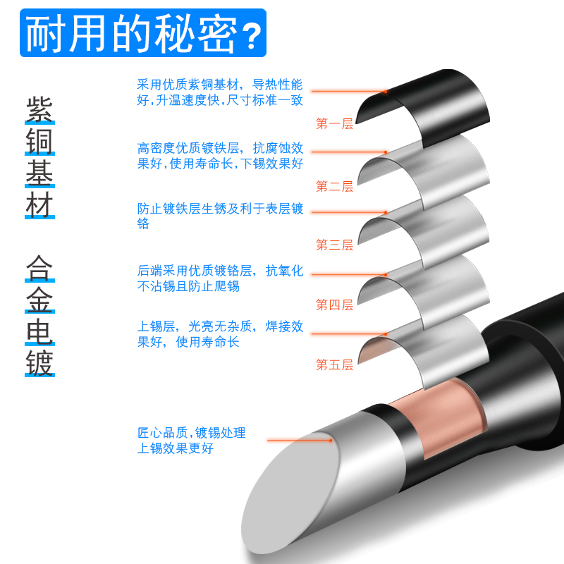 Leyi 936 universal electric soldering iron head internal thermal constant temperature soldering station Luo iron head knife head horseshoe flat pointed head