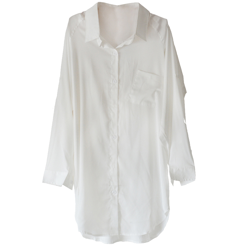 Pajama style shirt women's spring, summer and autumn sexy short-sleeved mood clothes boyfriend style white cotton large size night dress thin section