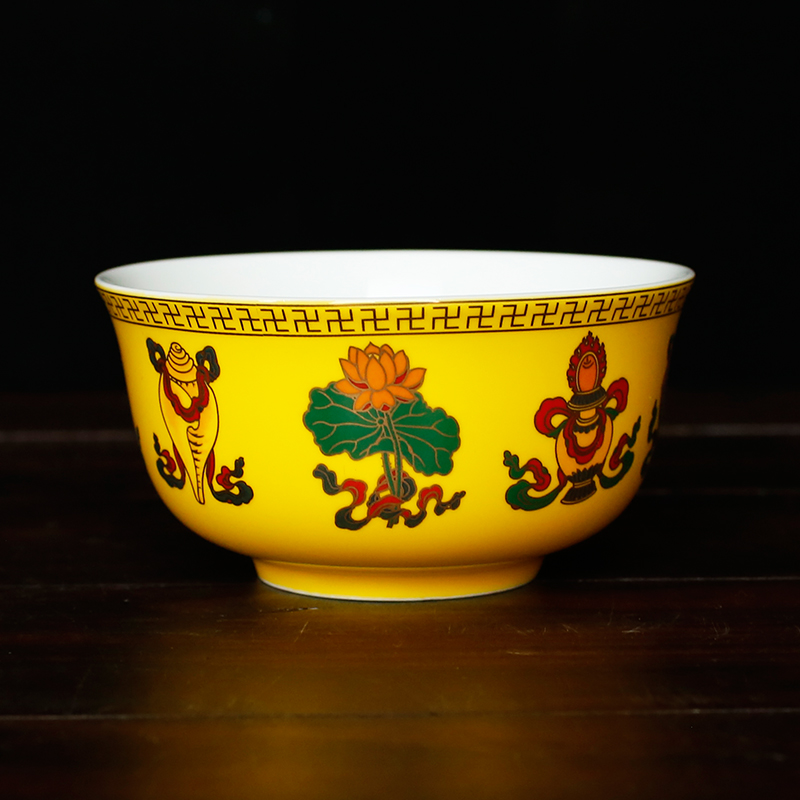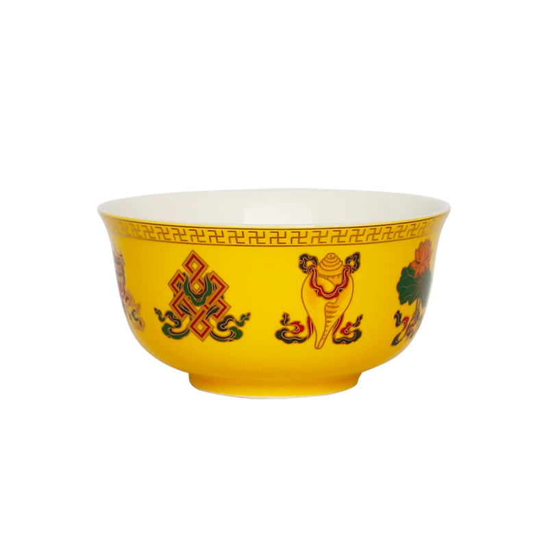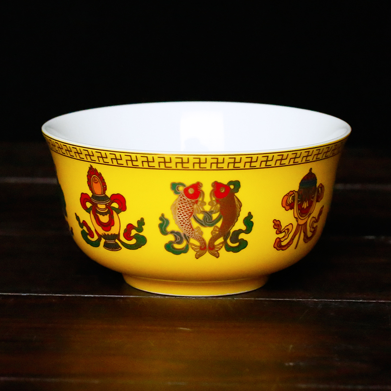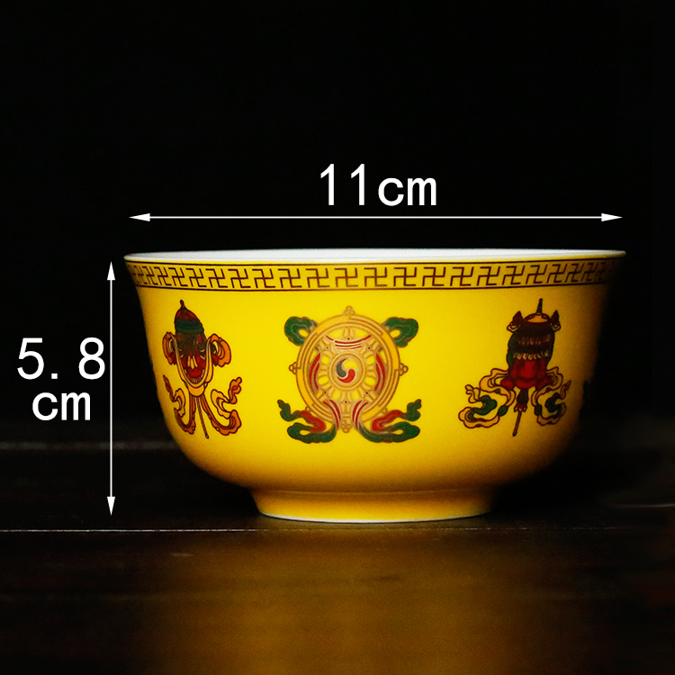 4-inch yellow eight auspicious for a bowl boutique Baigod Seven for eight ceramic Buddhas former Shentaikonauts Fasting Water Supply