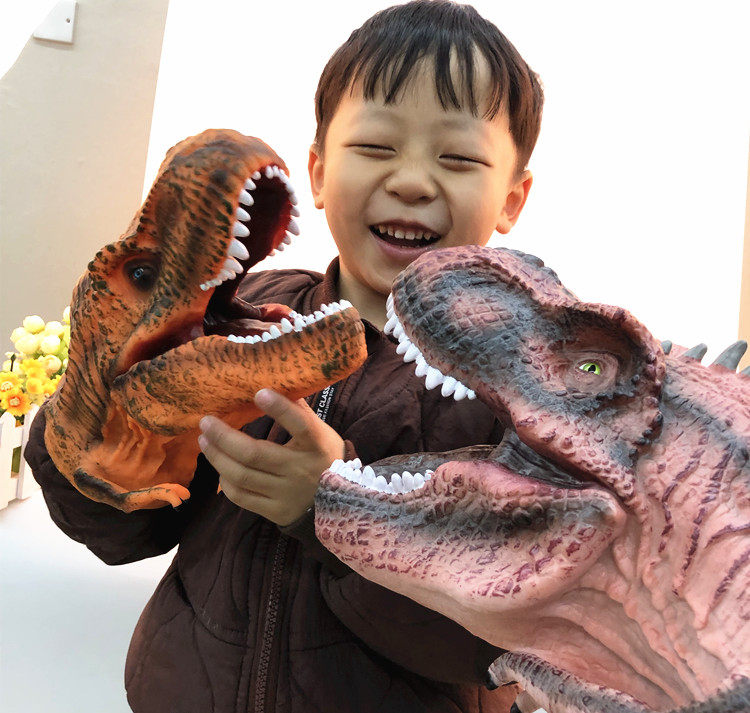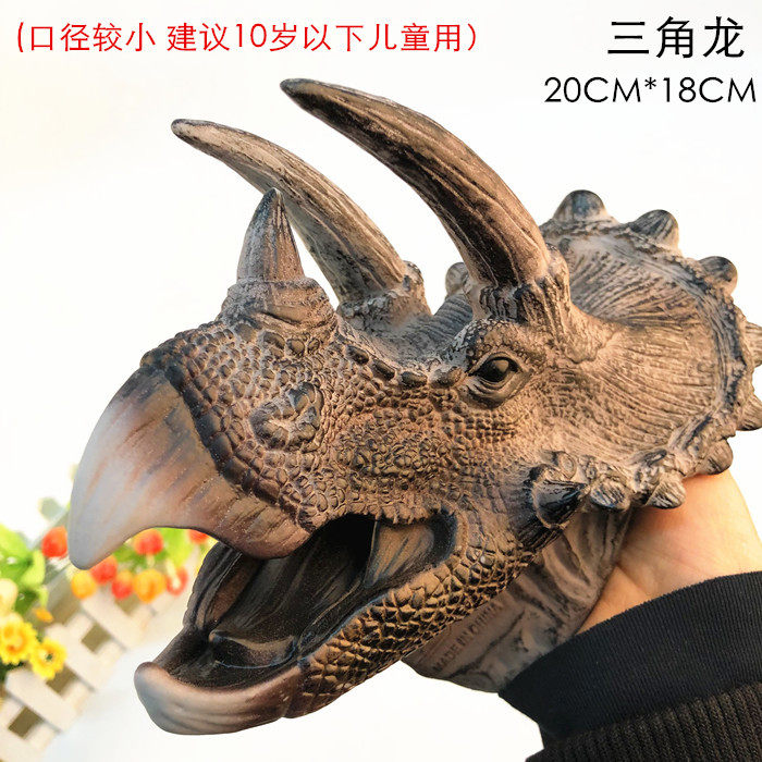 Shake-in-style Imitation Dinosaur Hand Puppet Glove Toy Soft Glue Triangle Bully Dragon Child Boy Model Doll Head