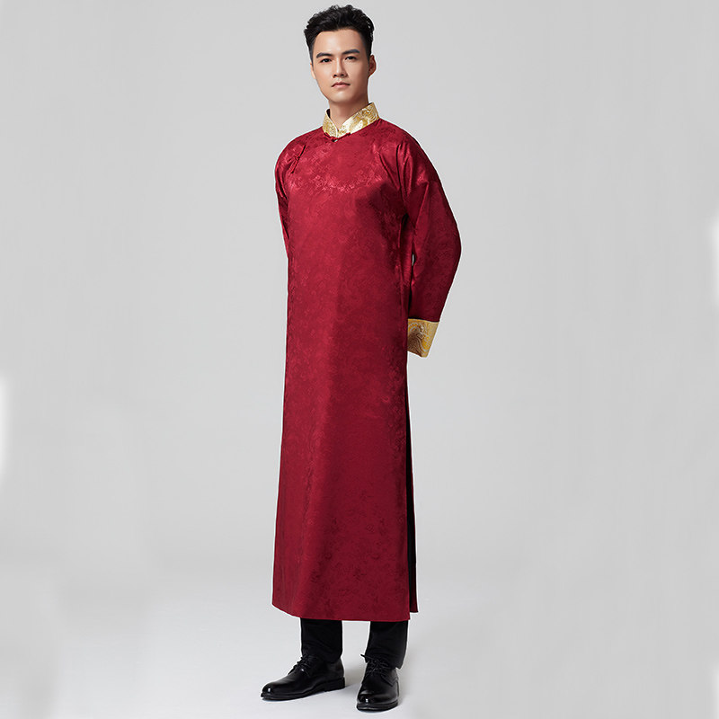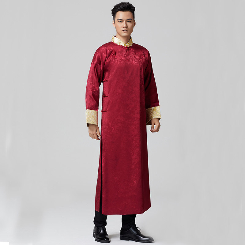 Chinese Wedding Bridegroom Costume Men's Donnts Wedding Chinese Style Mandarin Vest Long Shirt Bridegroom Brothers Dress Gown
