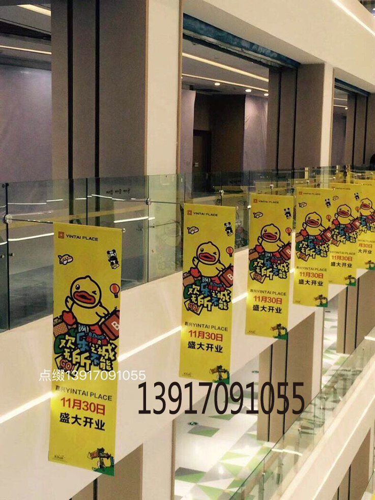 Shopping mall side chess pole glass hanging flagpole Glass fence flag hanging curtain ring gallery chess pole Stainless steel flag