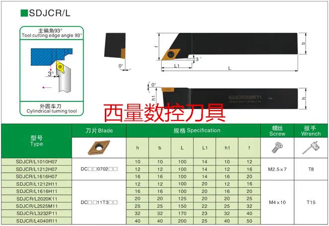 CNC double-head diamond clamping knife 93 degrees outer round knife SDJCR L1616H11 2020K11 2525M