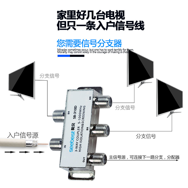 Seebei cable TV signal three-branch branch corridor CCTV splitter metric 1 minute 3 splitter