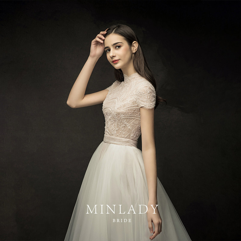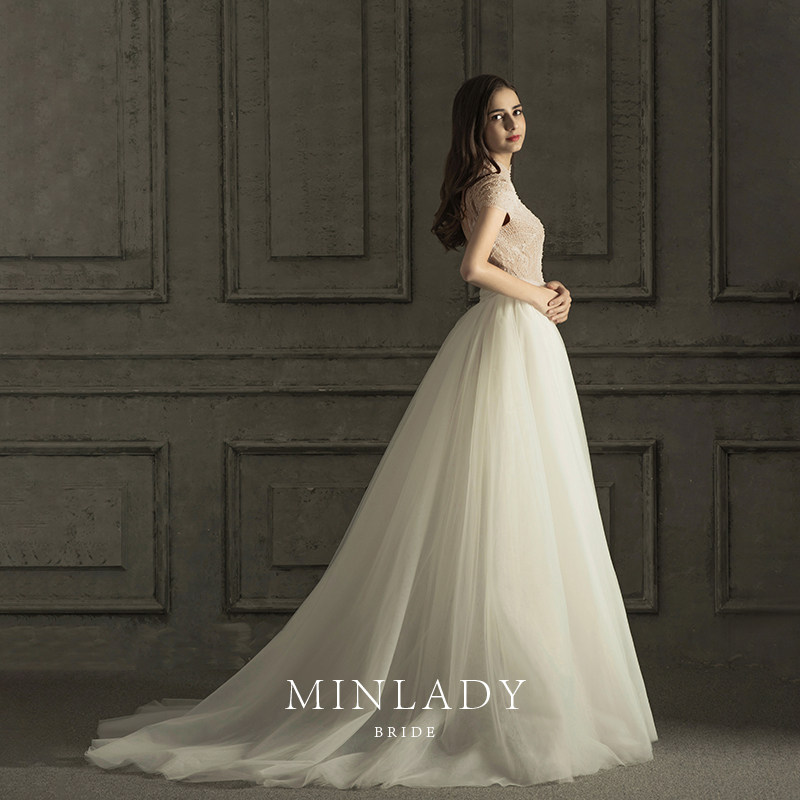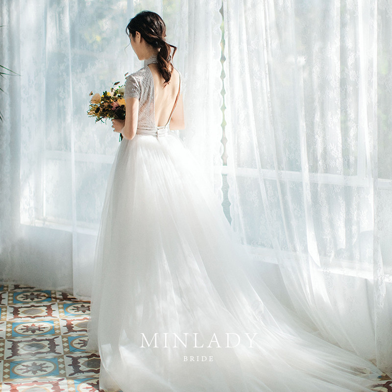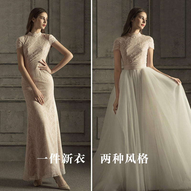 Famous) Austin wedding dress 2021 new bride retro heavy industry Hepburn wind Super fairy two wear French light wedding dress