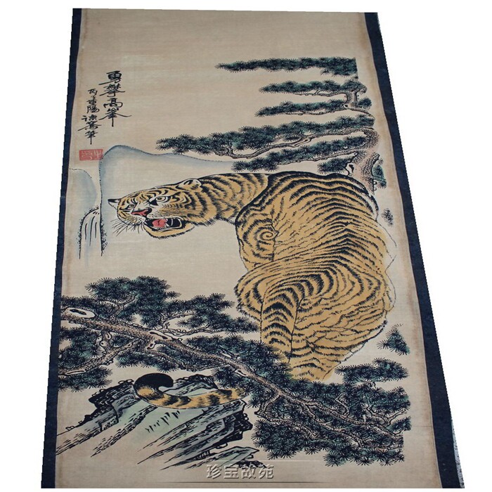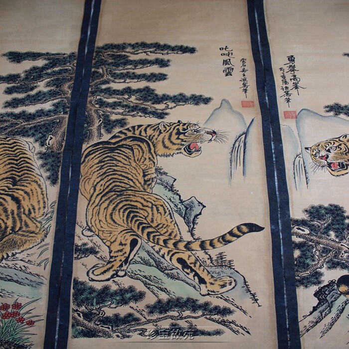 Ancient painting Tangbo Tiger painting Ancient Tiger picture Ancient Painting Studio Middle Hall Decoration Hanging Painting Four Screens