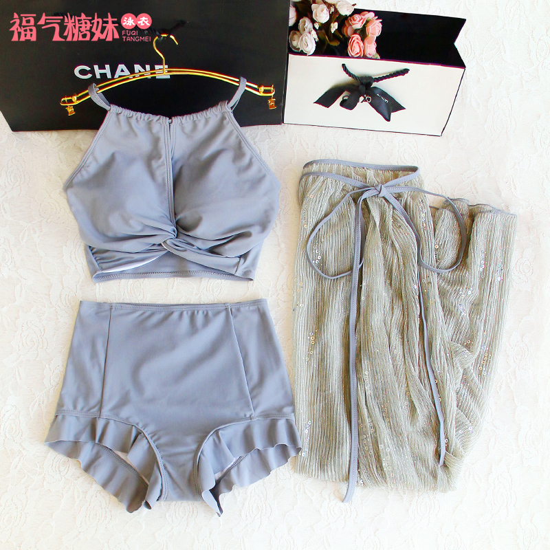 Swimwear women's two-piece three-piece set 2021 new summer fairy thin belly cover beach vacation leg cover dress swimsuit