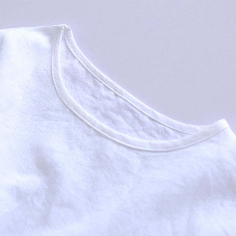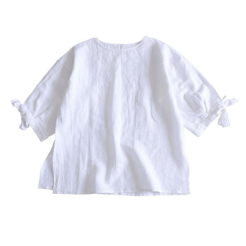 Predawn ultra-simple medium long version loose round collar middle sleeve hooded sweatshirt white linen T-shirt female blouse soft French numb