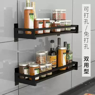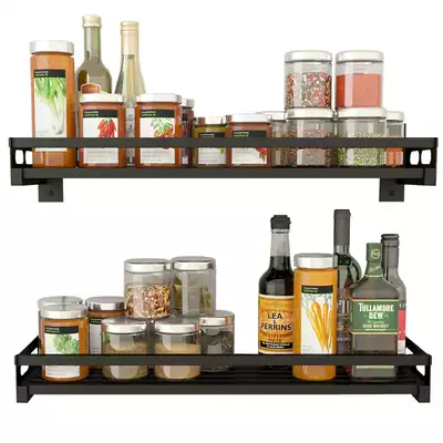 304 stainless steel kitchen rack Wall Wall Wall free hole saving space Black storage layer rack seasoning tank rack Wall