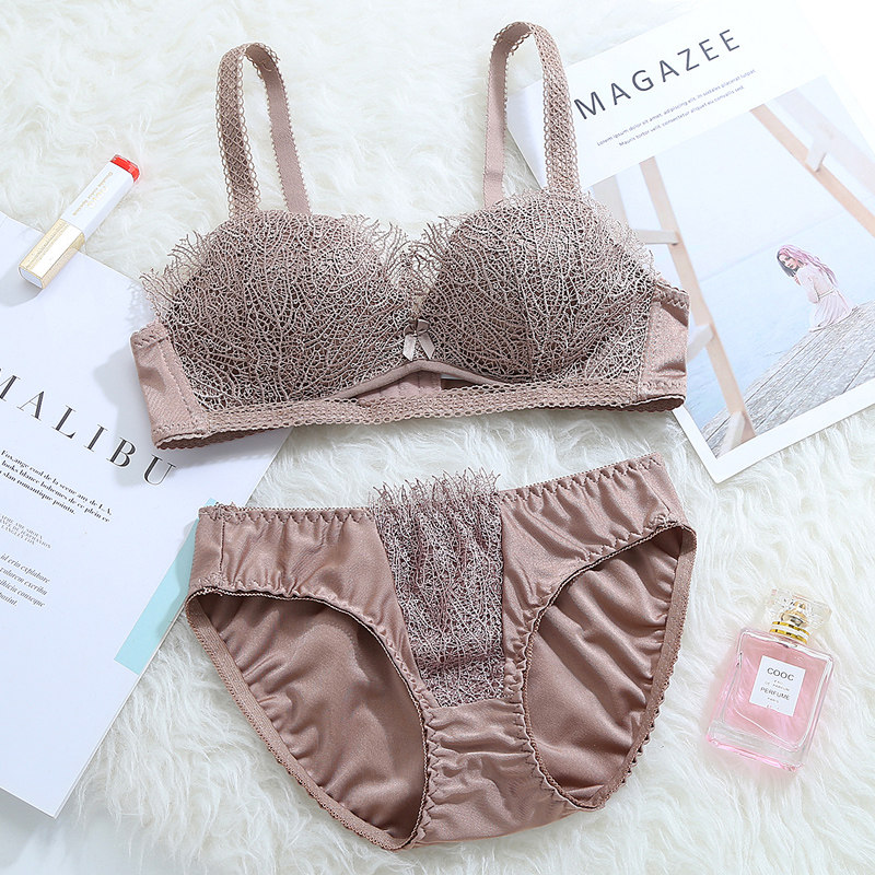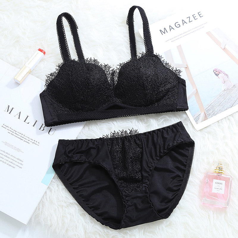 Sexy lace lingerie suit female steel-free ring thick small chest gathering on the custody of the breast against the drooping small bra thin