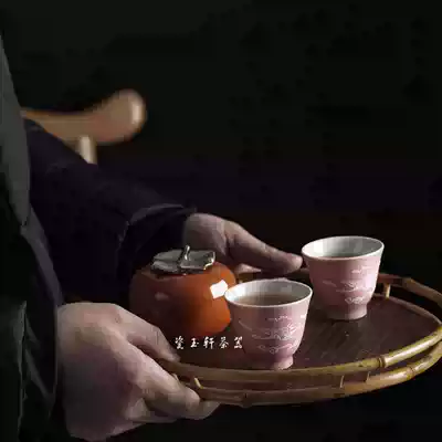 Jingdezhen porcelain Yuxuan ceramic tea set 1980s Jianguo porcelain factory color glaze flying crane pile carving master Cup