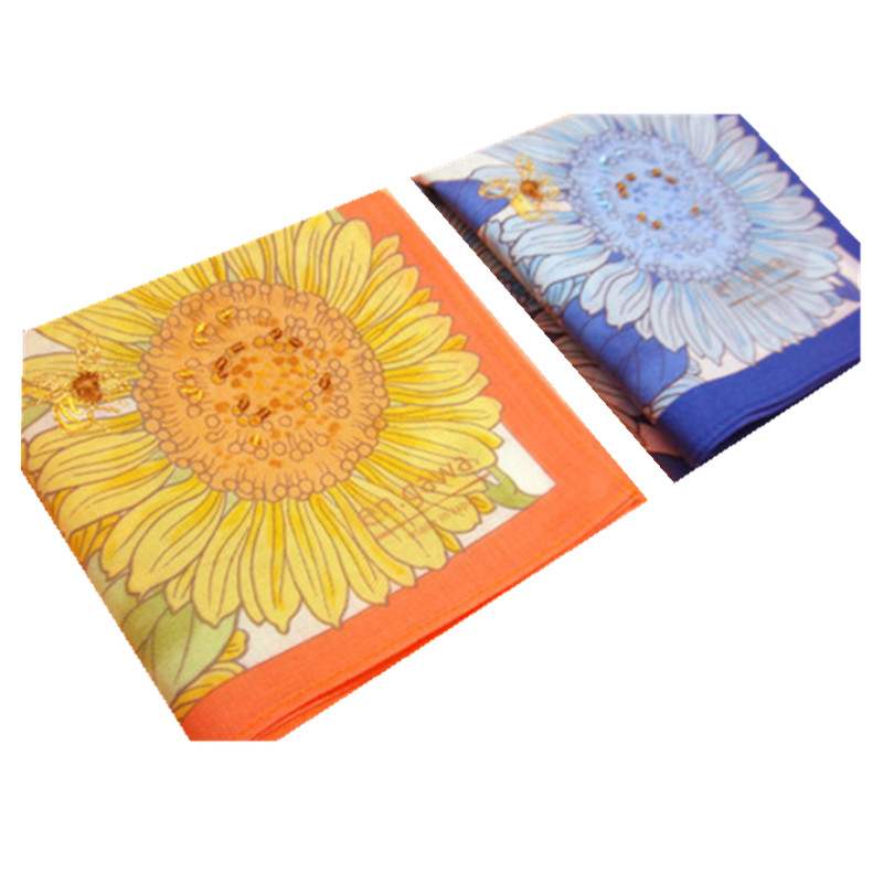 Two Japanese all-cotton ladies big flowers sunflower handkerchief, Japan-ROK, and wind handkerchief scarves