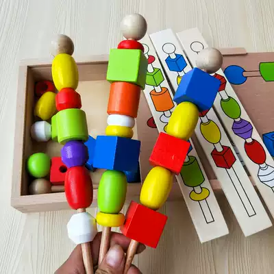 Montessori teaching aids Early education puzzle force beading box Kindergarten primary and secondary class boys and girls wear beads at the age of 1-2-3
