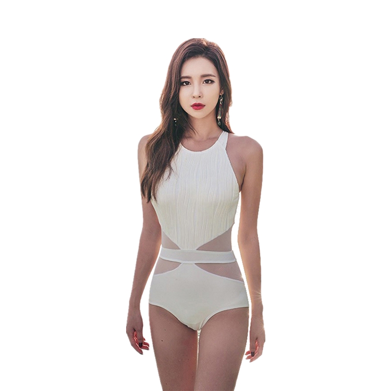 South Korea ins ladies swimsuit white one-piece backless Sexy Slim cover belly Hollow hot spring small fragrant wind bikini