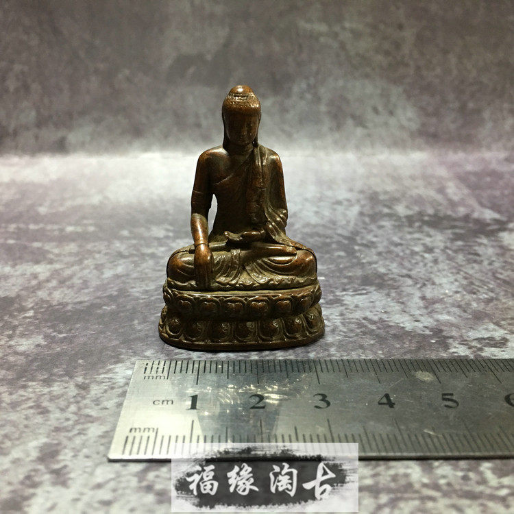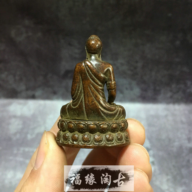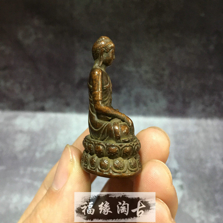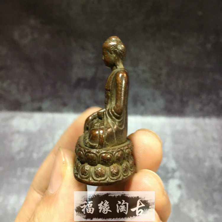 Pure copper carry-on guardian Buddha Shakyamuni Buddha Buddha Zen small Buddha ornament Small copper Buddha pocket Buddha vintage copper color