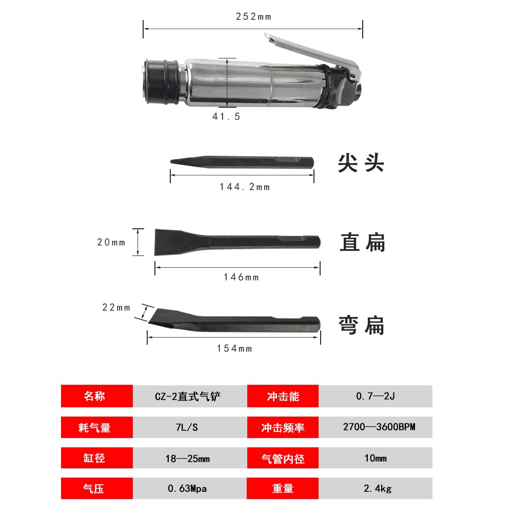 Giant Platinum Pneumatic CZ-2 Straight Gas Shovel Chisel Rock Machine Gas Chisel Welding Slag Pneumatic Shovel Air Hammer Gas Hammer Rust Removal