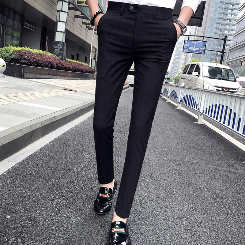Plaid 90% pants male summer Korean version sashimi and casual little western pants trendy thin foot Inron suit pants man