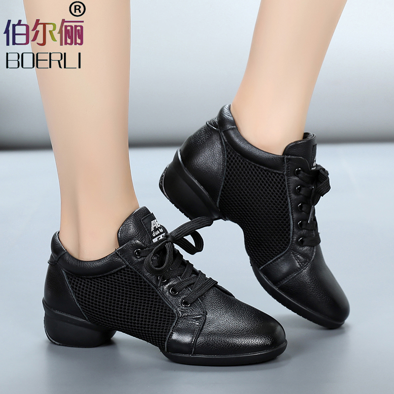 Beral Dancing Shoes 2019 Spring Summer New Web Face Dancing Shoes Women Soft Bottom Breathable Modern Jazz Square Dance Shoes