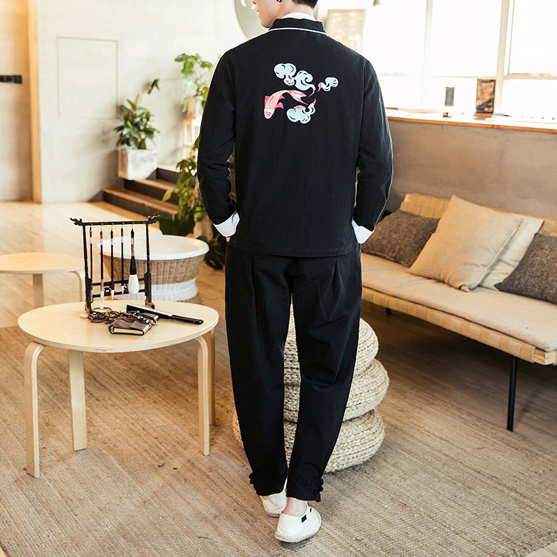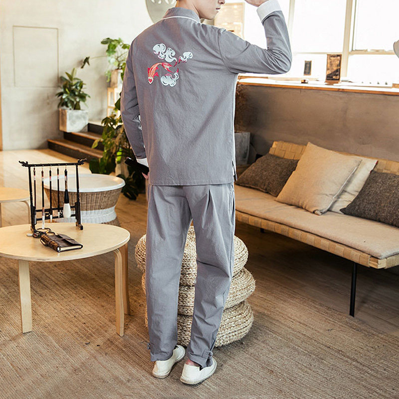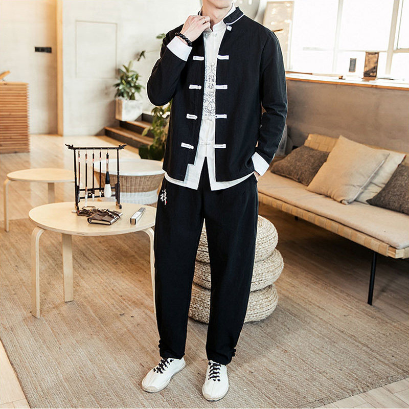 2020 Spring Chinese style Tang costume Ancient style cotton and linen two-piece suit National style Tai Chi suit Improved Hanfu linen suit