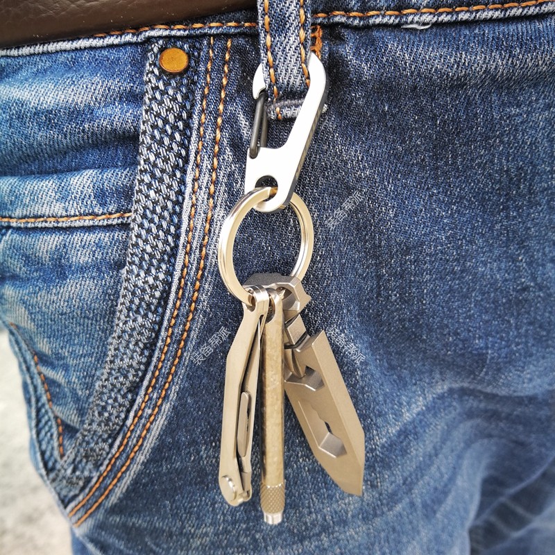 Simple small anti-lost titanium alloy keychain pure titanium molle backpack quick hook portable EDC tool buckle