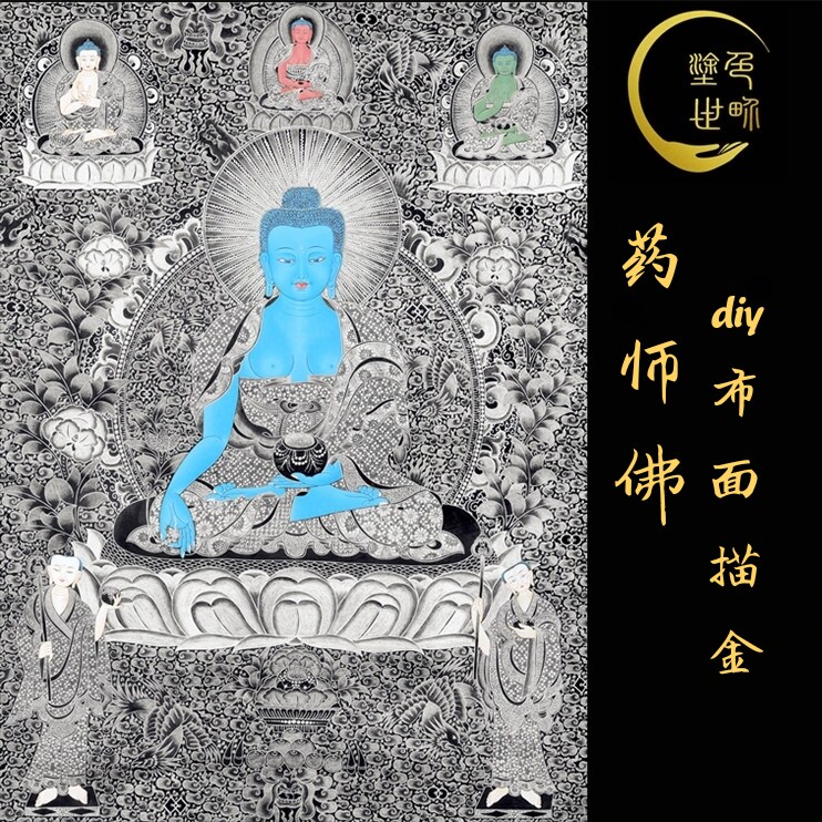 Medicine Buddha self-painted thangka depicting gold Buddha coloring painting diy canvas painting decorative painting (painting world)