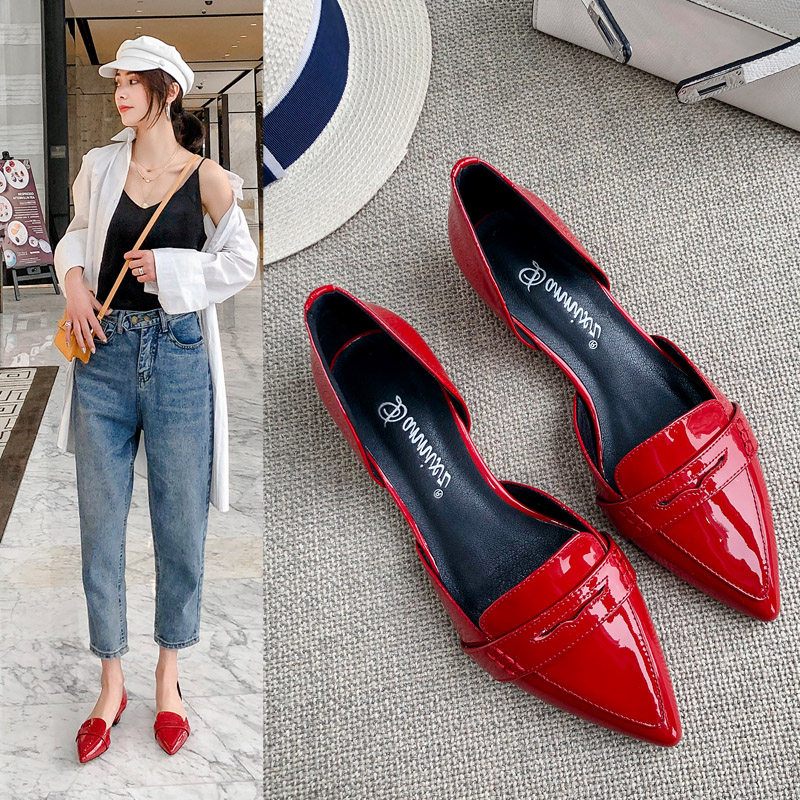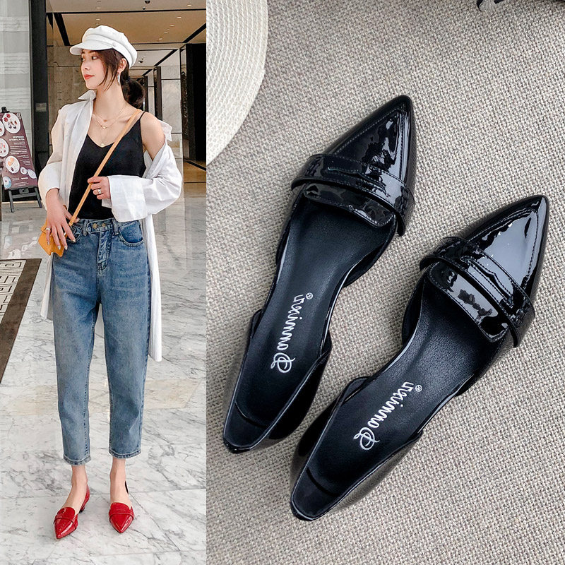 Hollow Baotou sandals women's 2022 summer new pointed-toe leather thick-heeled Muller shoes flat red mid-heel women's shoes
