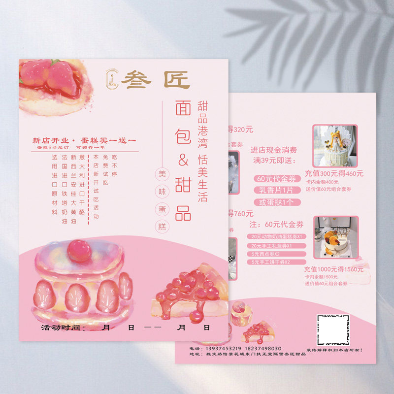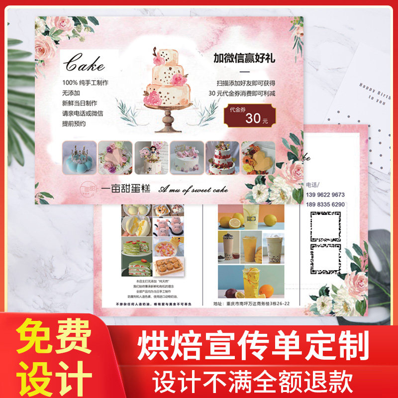 Cake Shop Flyer Design Production Baked Dessert Coloring Page Double-sided Printing DM Birthday A4 Private House West Point Opening Price Advertising Poster Custom Single Page Tri-Fold Brochure Printing Custom Made